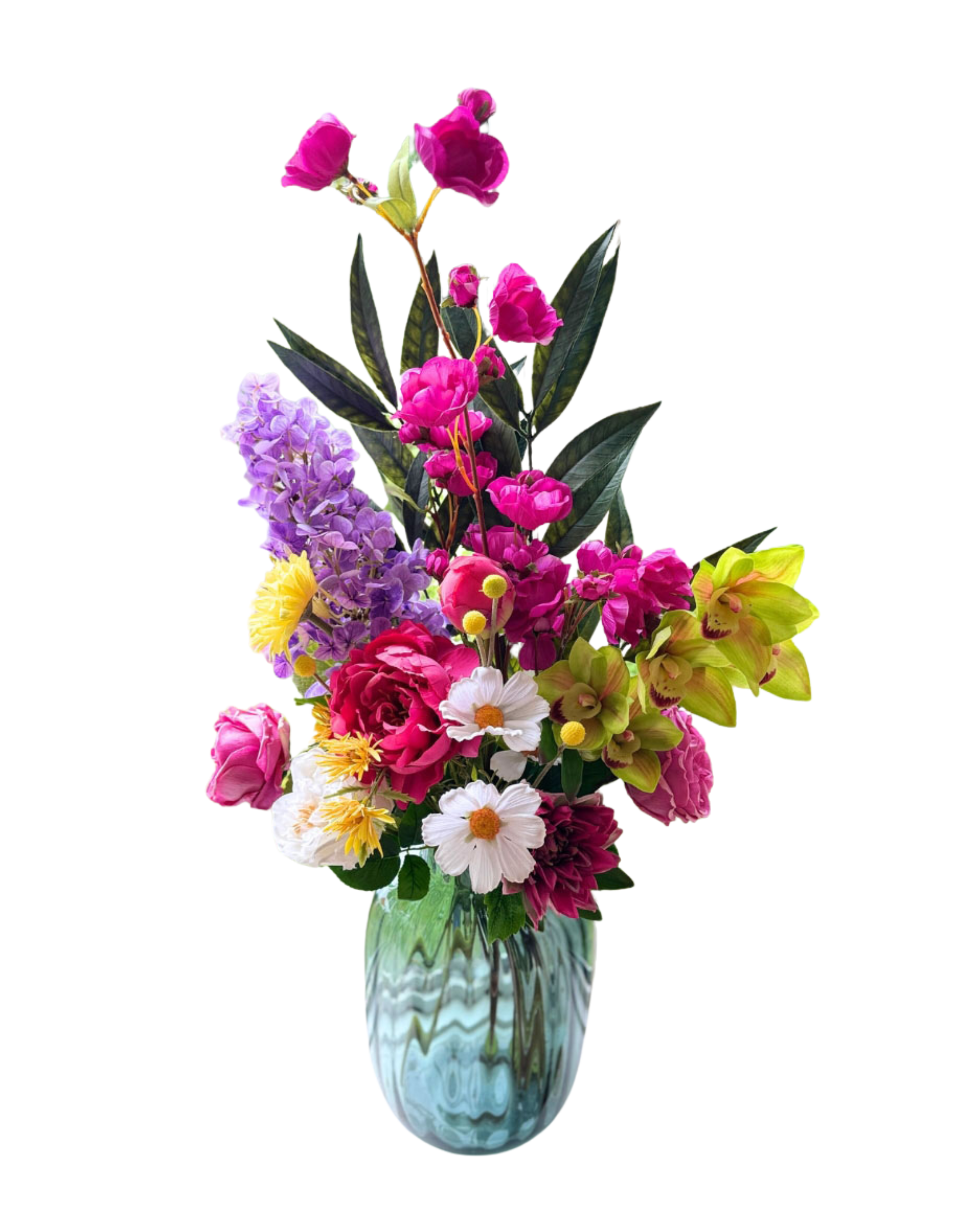vibrant mix of Real Touch and other premium stems, this arrangement features generous focal blooms and a cascade of cheerful accents that feel like a celebration in a vase.