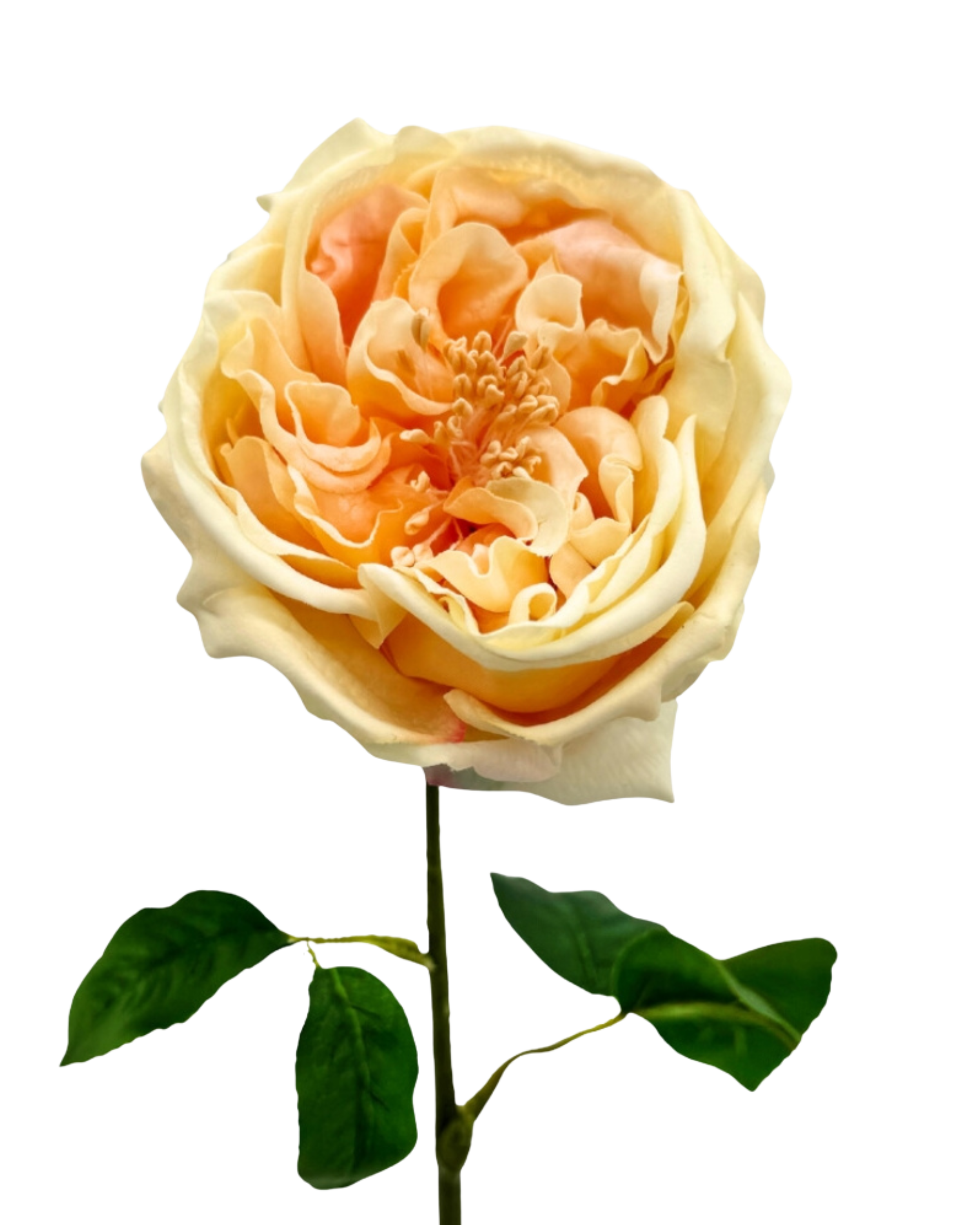 Austin style artificial rose in a champagne colour with realistic Real Touch petals, on a white background, from My Faux Florist artificial flowers Canada.