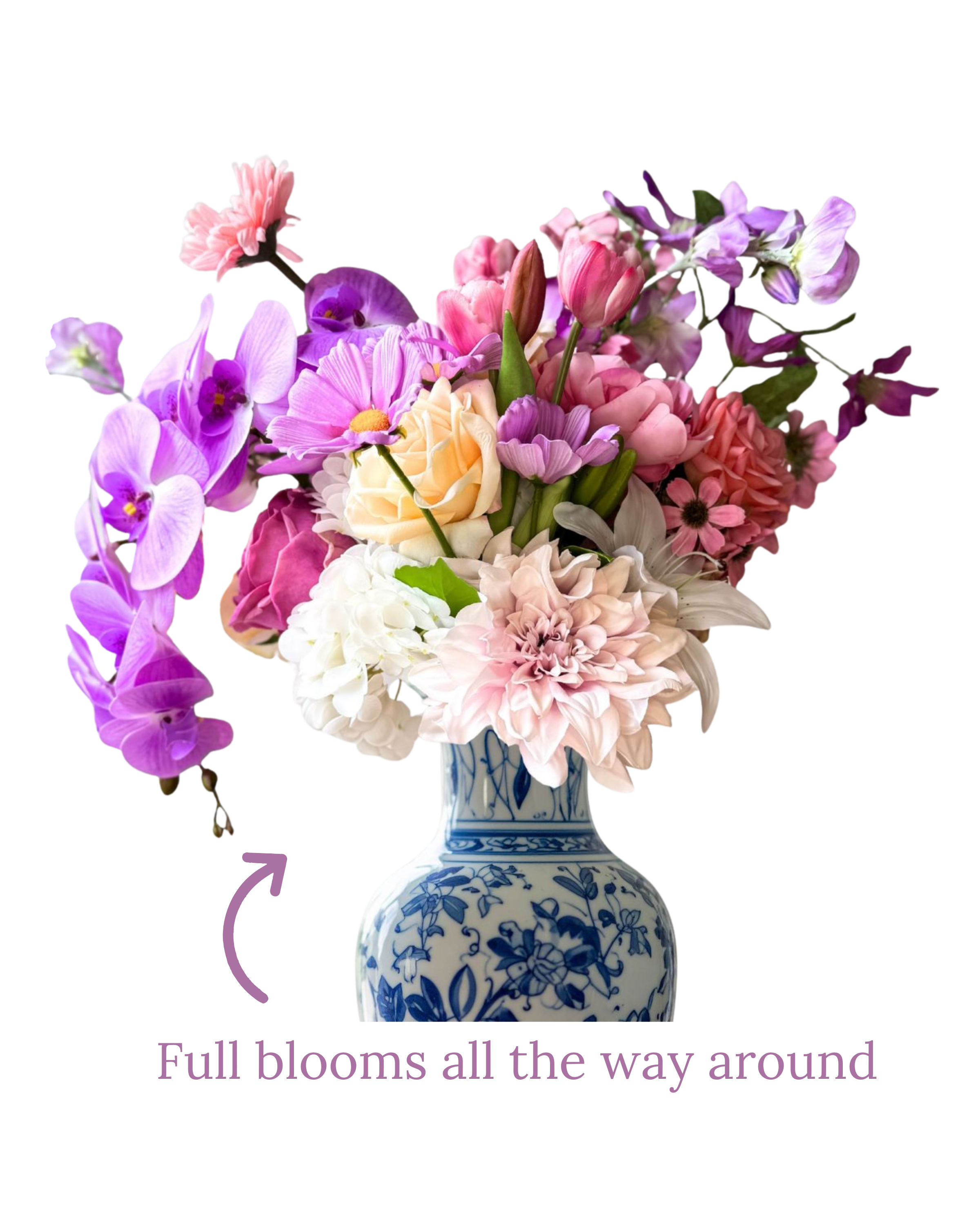 The flowers look super realistic and make a jaw-dropping arrangement. The only drawback was I had to figure out how to arrange them in a bigger bowl for that more voluptuous look.