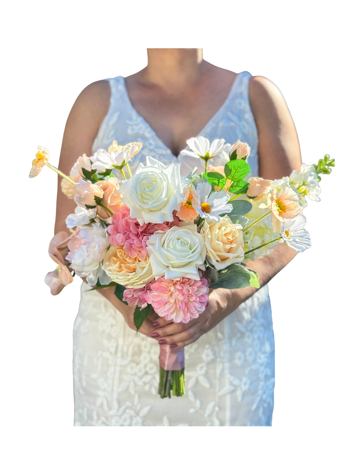 🎗️Ribbon Options: Each bridal bouquet is bound with quality double-faced satin ribbon. Use the drop-down menu above to select your preferred colour: white, off-white, or dusty pink.