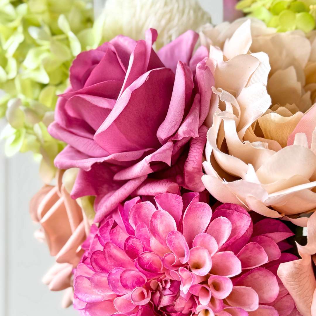 The Antique Dealer is a compact, romantic bouquet that captures old-world charm through its soft, timeworn palette. A graceful mix of antique cream, dusty mauve, and muted pink blooms is layered against gentle vintage greens, creating a look that feels both refined and nostalgic. Perfect for brides who love understated elegance with a hint of vintage storybook romance.