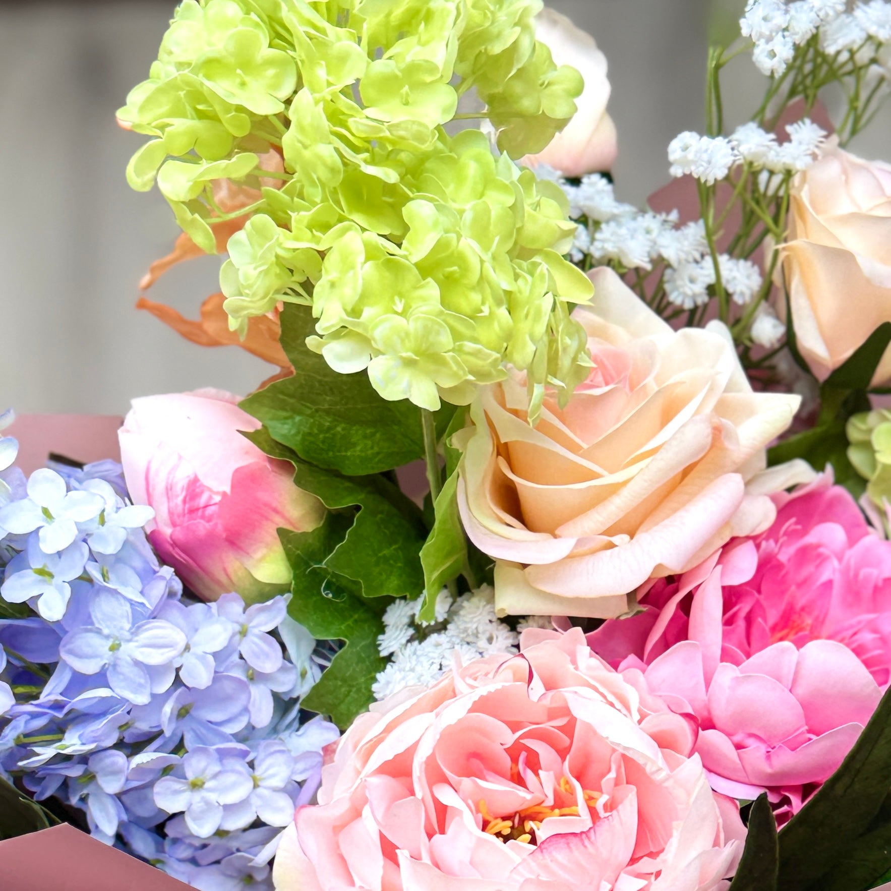 A hand-tied selection of premium artificial flower stems, beautiful wrapped and ready to gift or display.
